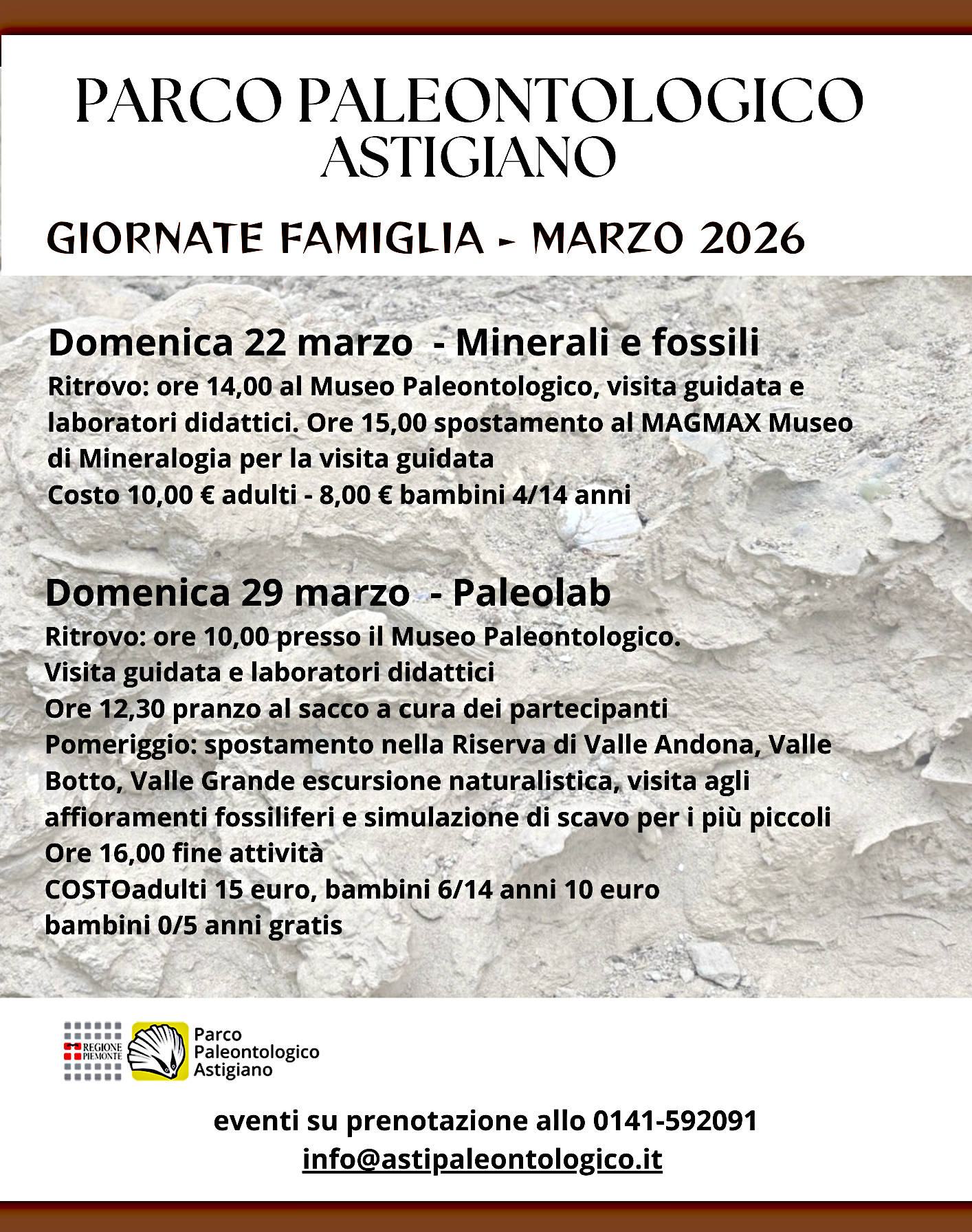 [vc_row css_animation="" row_type="row" use_row_as_full_screen_section="no" type="full_width" angled_section="no" text_align="left" background_image_as_pattern="without_pattern"][vc_column][vc_column_text]m Ami la storia naturale, i fossili e vuoi vivere un’esperienza formativa unica? Questa è la tua occasione! Il museo Paleontologico di Asti apre le sue porte ai giovani che desiderano mettersi in gioco con il Servizio Civile in un ambiente...