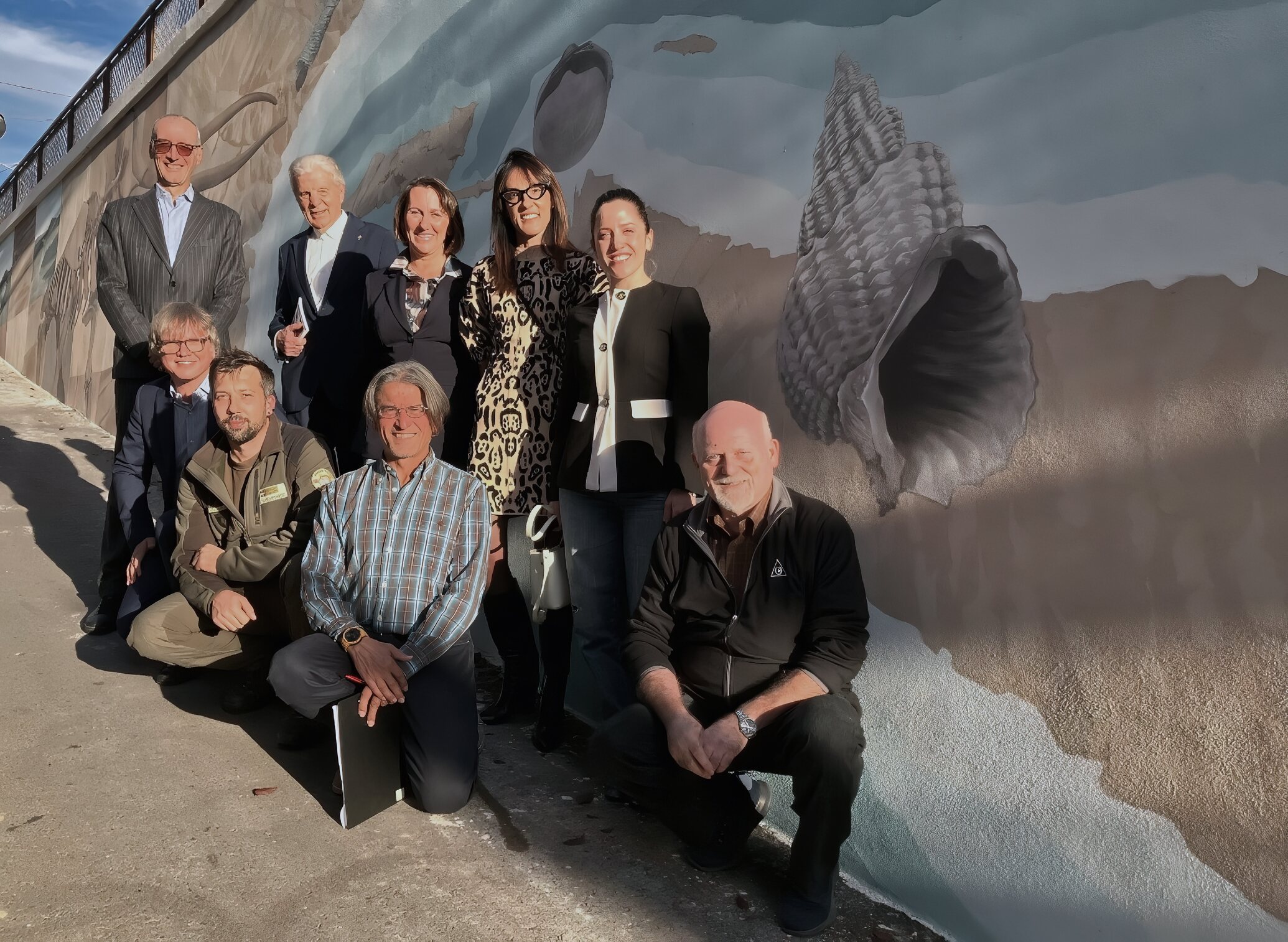 Nella foto: gruppo di amministratori e tecnici davanti al nuovo murale